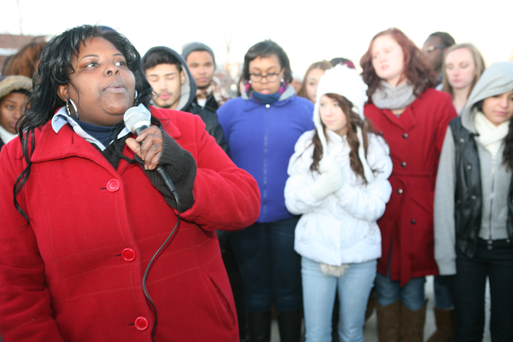Sheila Armstrong, a teacher and member of P.O.W.E.R. through Ezekiel Baptist Church, decries poor funding for schools. (Photo: Harvey Finkle)