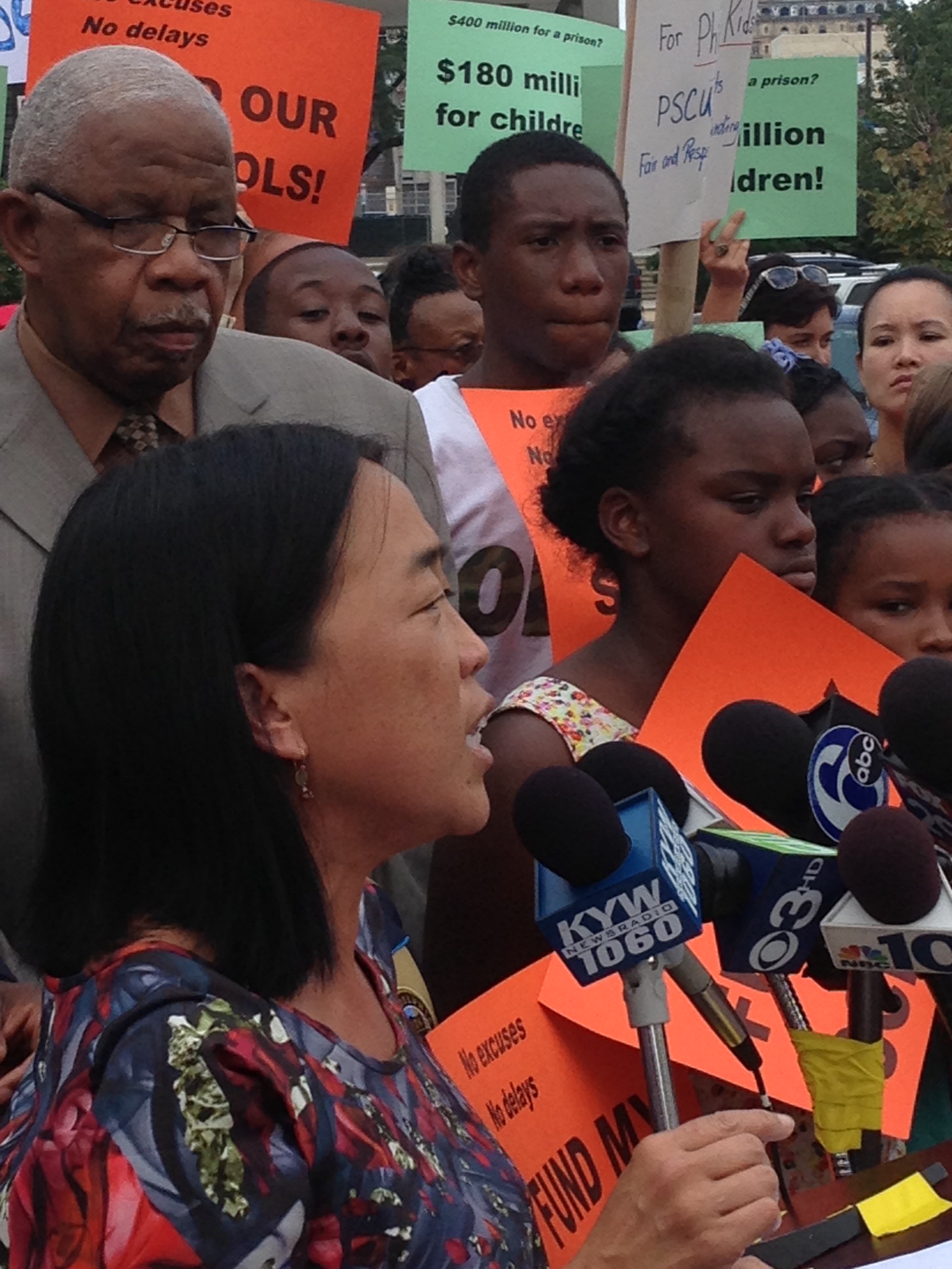 Parents United’s Helen Gym speaks at the P.O.W.E.R. rally and vows that “the eyes of the nation should be on Philadelphia” and the shameful state of Philadelphia’s public schools.