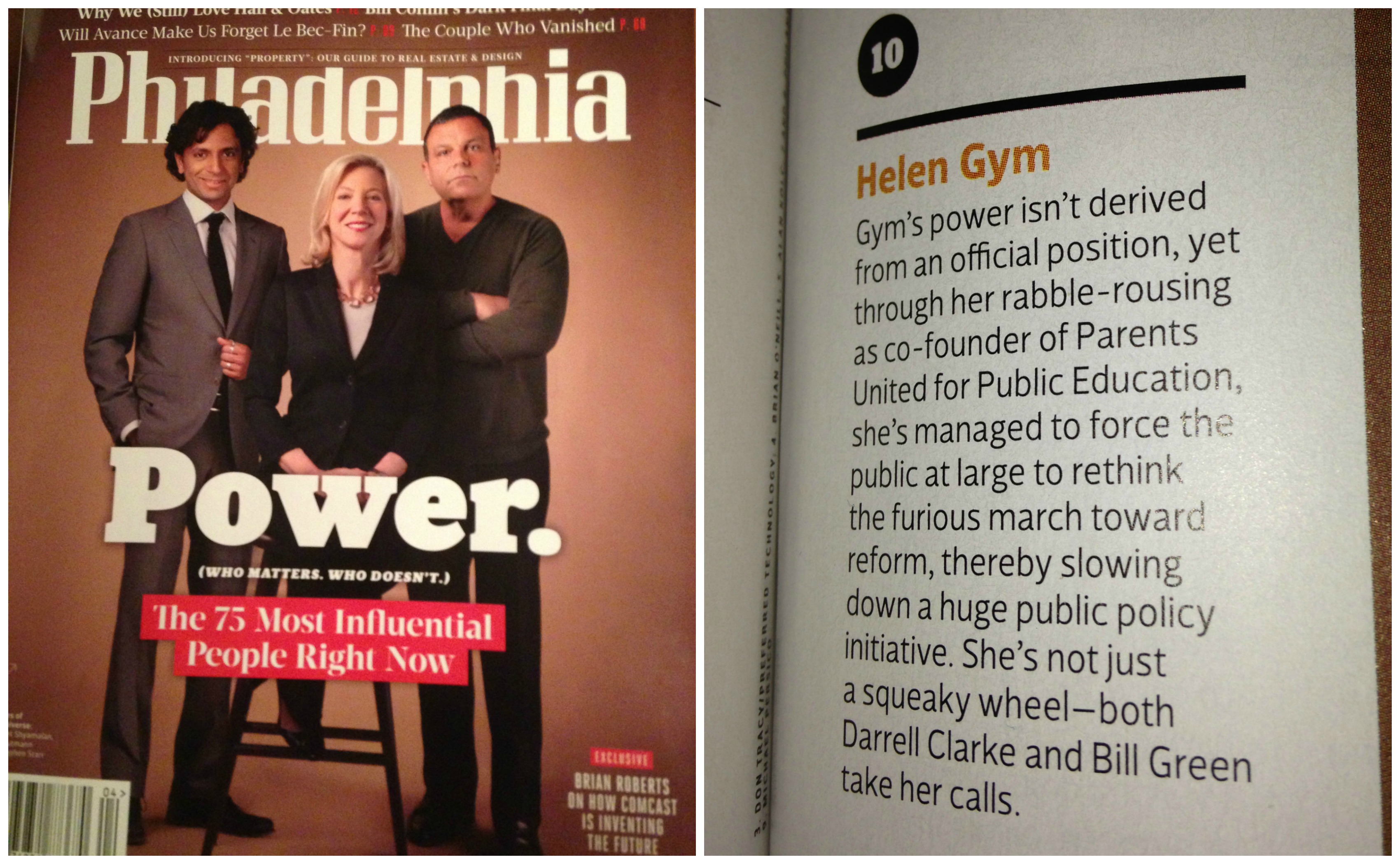 If rabble-rousing is a sport, looks like Parents United for Public Education is a champion! April’s Philadelphia Magazine named me one of their 75 most influential people in Philadelphia and one of the top 10 movers and shakers in civics. Here’s what they had to say: